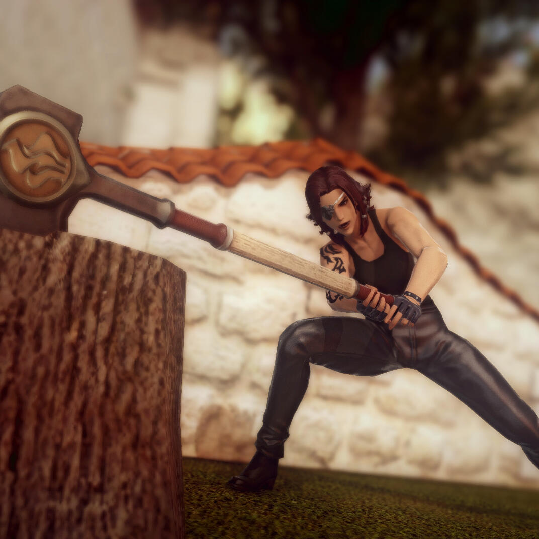 Chad Hunkler was born into a small business family in Aleport. She grew up in constant conflict with others, getting into fistfights often. When she reached her late teens, Chad left her family to work in Limsa Lominsa as a freelance deckhand/mercenary.She spent a good number of years traveling to Kugane and back, until one ship she was protecting was attacked. She lost her eye defending the cargo. Now, Chad is searching for a way to bring her eye back, picking up Conjury (and staff-fighting) herself when others could not heal her.