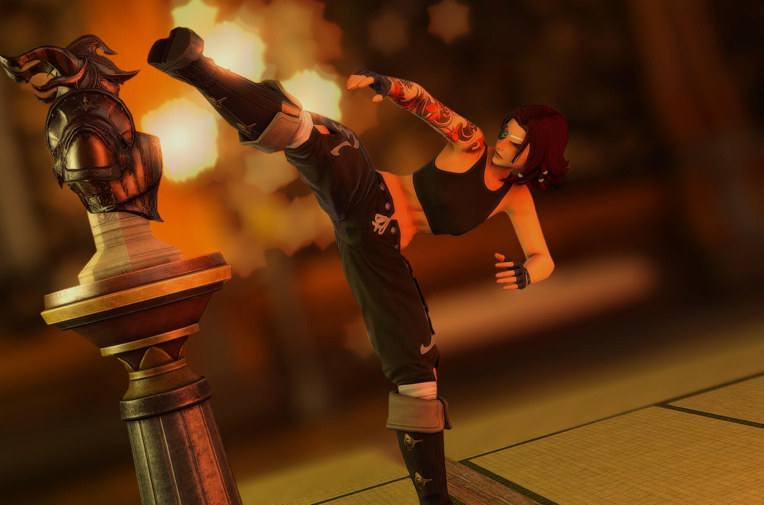 Chad is an experienced brawler, and frequently gets into fights, in rings and on the streets. She is also an experienced chef, learning a mixture of Limsan and Hingan cooking, along with staple sailor's cuisine.