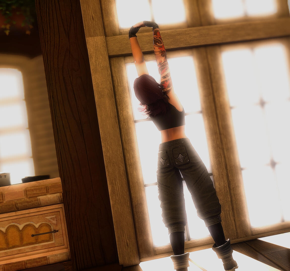 More recently, Chad has ventured into the more arcane arts, picking up conjury, thaumaturgy, and traveling to Sharlayan, hoping to find something to help heal herself.